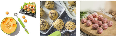 The small-sized scoop cleanly removes seeds from vegetables like bell peppers, cucumbers, and summer and winter squash. The big-sized scoop is ideal for fruit salad, ice cream, cupcakes, cookies, and more.